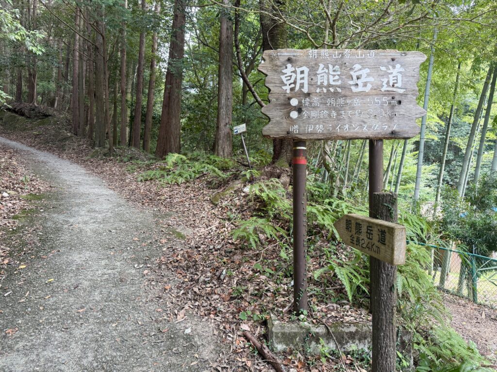 住宅街を抜けて、数分で登山口に到着。登山道には『朝熊岳道』という名前がついています。