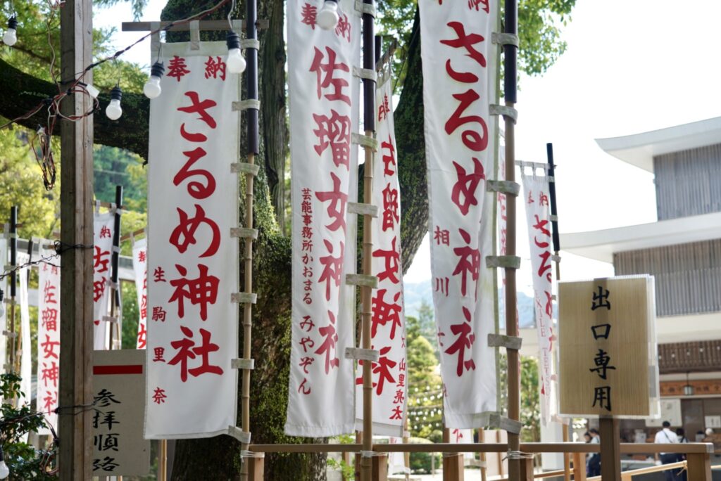ちなみに、天鈿女命は天照大御神が岩屋にお隠れになってしまった時に活躍した踊り子の女神です(天岩戸事件)