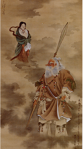 天空世界から地上へと降りていくわけですが、その時に天狗のような神様が現れます。